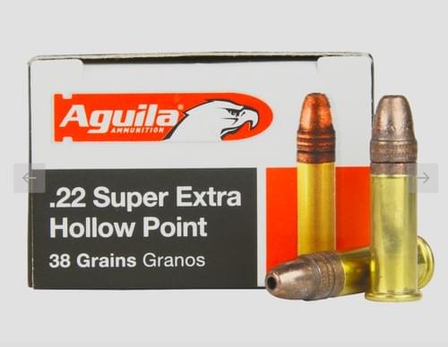 Aguila 22LR Super Extra High Velocity 38gr Copper Plated Hollow Point 1280fps,50 Rounds.