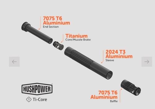 Innovative design without compromising on weight, presenting the Hushpower Ti-Core Silencer. Crafted locally in NZ this silencer sets the standard for suppression for firearms. Featuring a titanium core that increases its durability while maintaining a lightweight profile. With its simple one-piece monolithic baffle design, this silencer is uncomplicated in build, yet delivers as an exceptional suppressor.